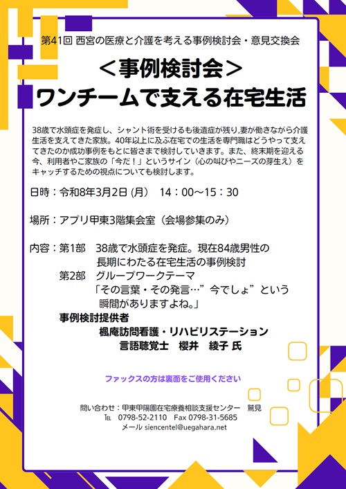 問い合わせ:甲東甲陽園在宅療養相談支援センター 鷲見